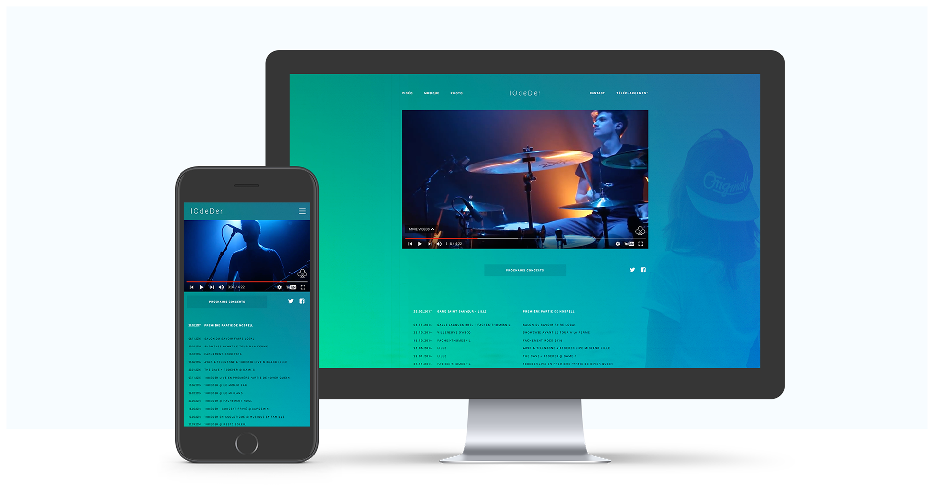 10deDer est mon groupe d'électro-pop depuis plus de 7 années. J'ai réalisé et fait évoluer au fil du temps l'identité visuel du groupe, que ce soit au niveau du Logo, du Site Web ou même des vidéos.